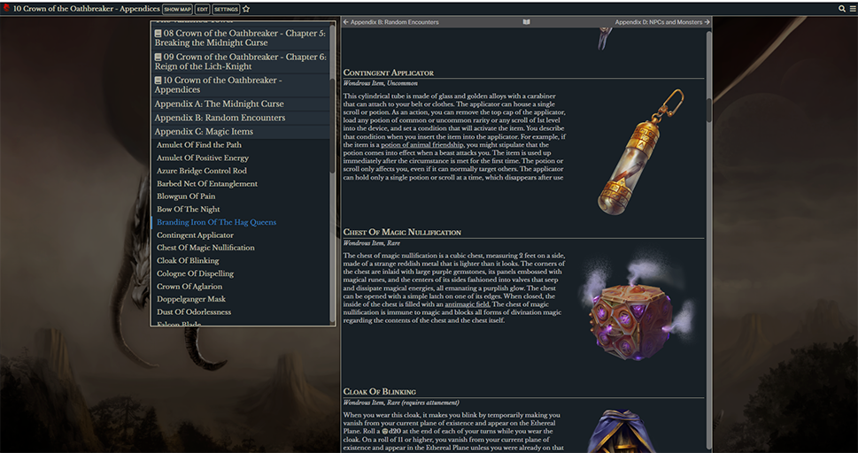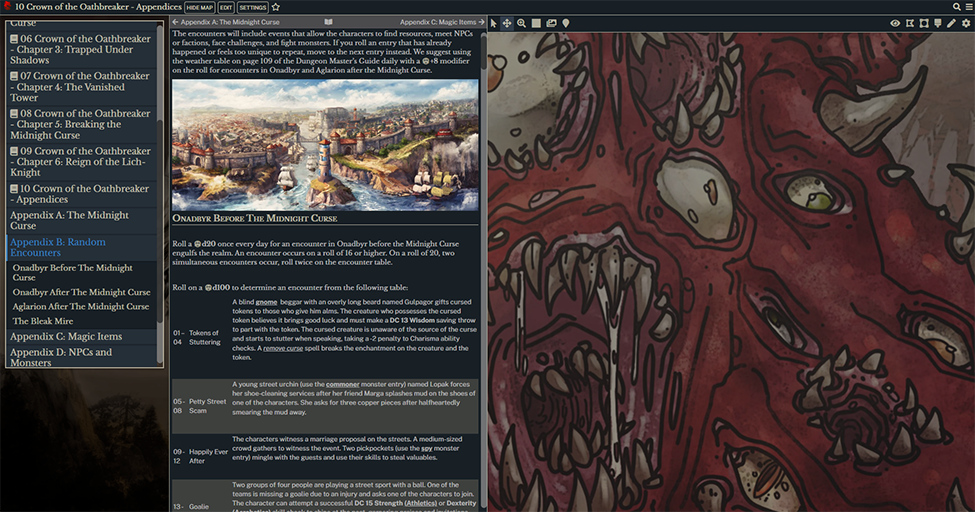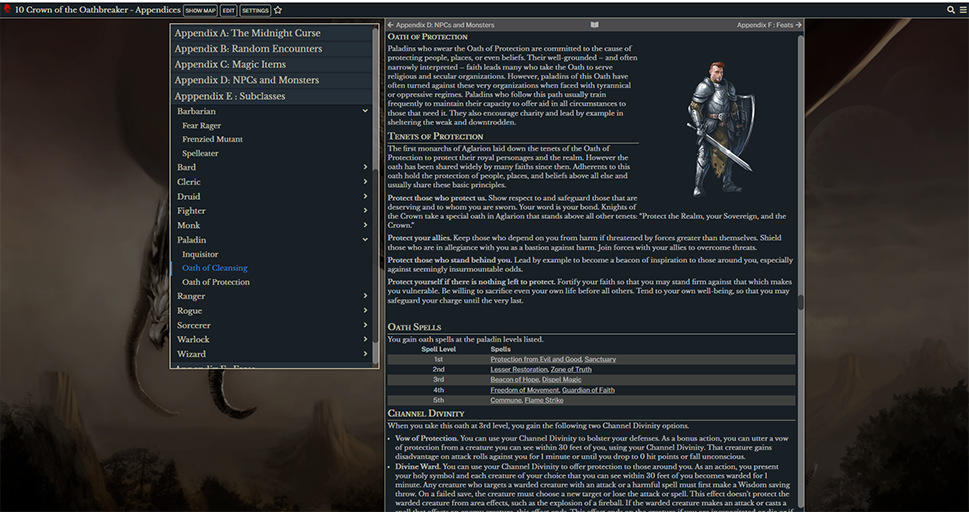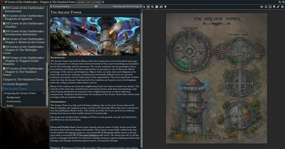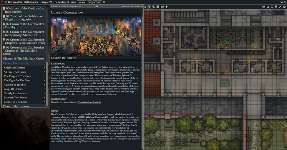 The Crown of the Oathbreaker Shard Tabletop Module offers an exceptional adventure experience for players. Every map is set up with encounters, providing seamless integration between story entries and maps. Additionally, all book locations are linked to maps where applicable, making it easy to follow the adventure narrative.