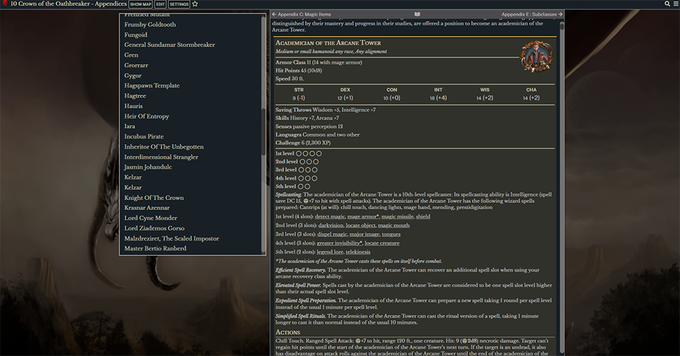 Moreover, all NPCs have their spell slots and other effects set up for easy tracking, simplifying the gameplay experience for the players. The module also features random encounter tables that are set up for ease of use, with each section linked so that players can quickly and easily populate an encounter.