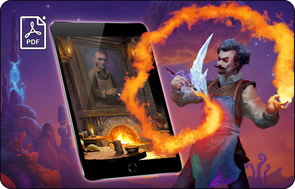 In this one-shot horror dungeon, characters descend into a painted world crafted by a man unraveling into madness. Rooms shift, pigment bleeds from the walls, and reality warps stroke by stroke. Each chamber is a defense — surreal, lethal, and alive with infernal intent. At its heart, the Brush of Moal’dax waits, seeking a new hand to guide it... and new lives to paint away.