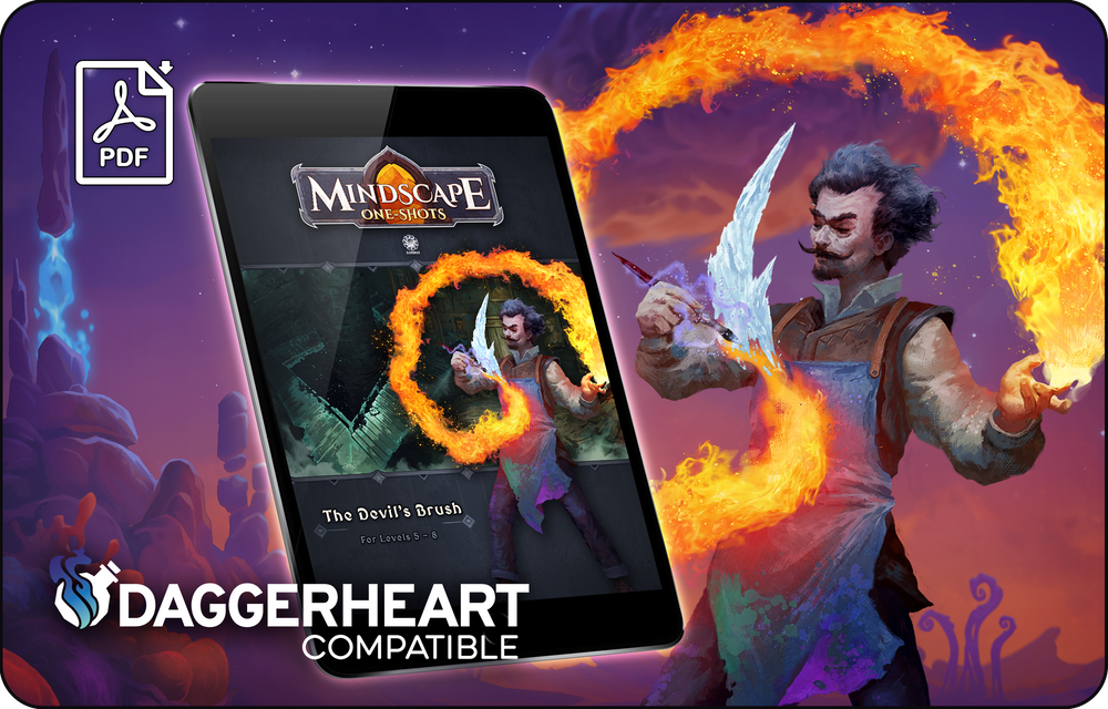 In this one-shot horror dungeon, characters descend into a painted world crafted by a man unraveling into madness. Rooms shift, pigment bleeds from the walls, and reality warps stroke by stroke. Each chamber is a defense — surreal, lethal, and alive with infernal intent. At its heart, the Brush of Moal’dax waits, seeking a new hand to guide it... and new lives to paint away.