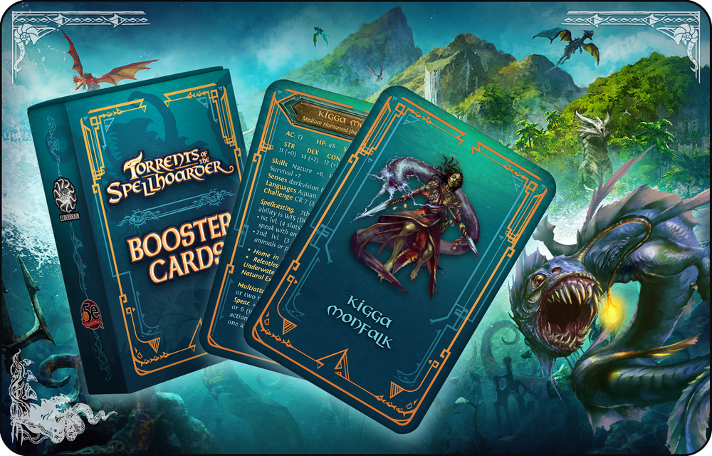 Each card has an illustration on one side and descriptive text on the other side. Players can use these cards to easily learn the new abilities they gain from an item, spell, or feat unique to the setting of Torrents of the Spellhoarder.