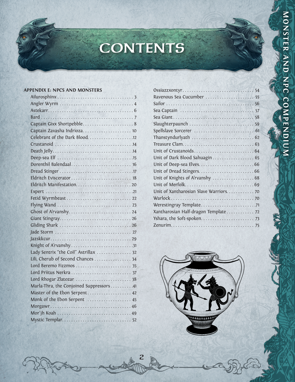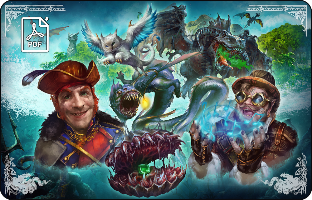 This compendium features over 55 unique monster and NPC stat blocks and colorful illustrations from the Torrents of the Spellhoarder adventure and campaign setting.