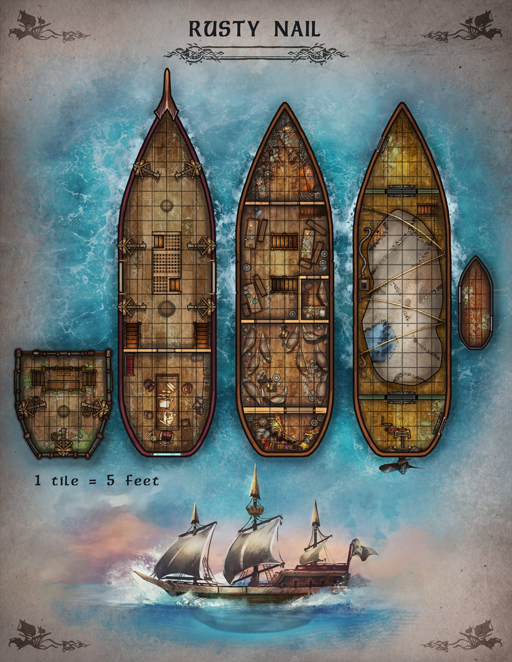 The first two chapters, an over 100-page adventure, are available as a free download. Board the Sated Contessa, a ship headed to the legendary Isles of Xantharos, and uncover the mystery of a murdered merchant. But beware—the sea is full of monsters, and the rumors about the return of an ancient kraken necromancer might prove to be more than just tall tales told by grumpy sailors . . .